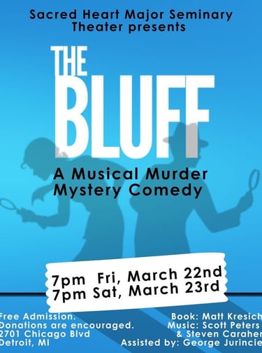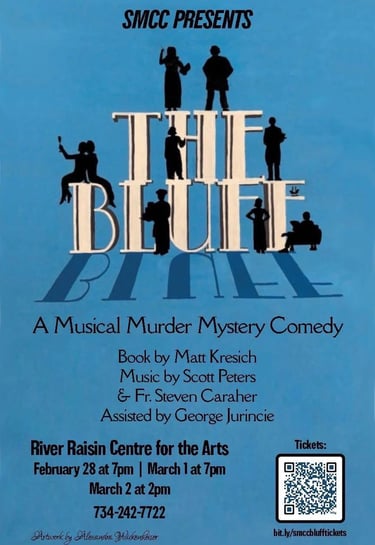 He is met by a colorful cast of suspects composed of wealthy business elites, aspiring artists, and a suspicious butler. As it quickly becomes clear that Dexter is in over his head, Mr. Bluffington’s secretary becomes an unlikely ally. Will the case be solved before Dexter’s true identity is revealed? Set to a contemporary Broadway style, The Bluff is packed with memorable numbers which feature heartfelt ballads, energetic ensembles, and a sea shanty.